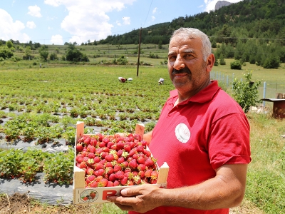 Bütün köy çilek yetiştiriyor. Rekolte yüksek ama yine de siparişlere yetişemiyorlar.
