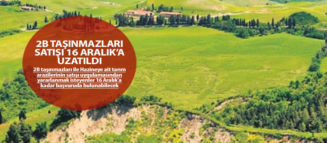2B taşınmazları ile Hazineye ait tarım arazilerinin satışı uygulamasından yararlanmak isteyenler 16 Aralık'a kadar başvuruda bulunabilecek.