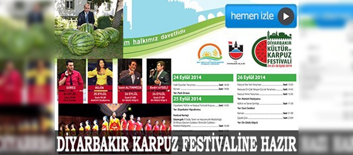 Gıda Tarım ve Hayvancılık Bakanlığınca Diyarbakır karpuzunun tanıtılması ve üreticisinin desteklenmesi amacıyla 24-26 Eylül'de düzenlenecek "Kültür ve Karpuz Festivali", Park Orman'da 11 ilin katılacağı halk oyunları yarışmasıyla açılacak.