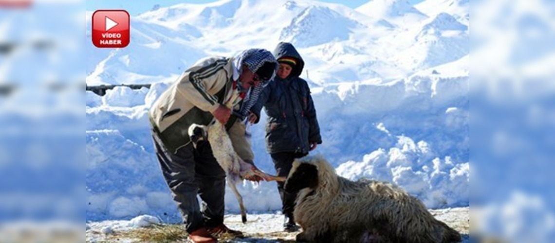 Yaz aylarında meralarda besledikleri koyunlarını, kış mevsiminin zorlu şartları nedeniyle ahırlarda koruyan yetiştiriciler, yeni doğan kuzuları da soğuk hava ve hastalıktan korumak için ellerinden gelen çabayı gösteriyor.