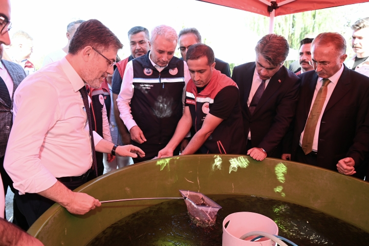Ardından Gölköy'deki İl Tarım ve Orman Müdürlüğü Balık Üretme Tesisi'ni ziyaret eden Yumaklı, yavru sazanları poşetlere doldurdu.