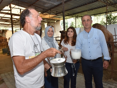 Aydın'da, üç ay önce başlatılan ve deve sütü üretimi ile tüketiminin artırılması hedeflenen proje kapsamında yurt dışından gelen konuklar, İncirliova ilçesinde bir çiftlikte incelemelerde bulundu.