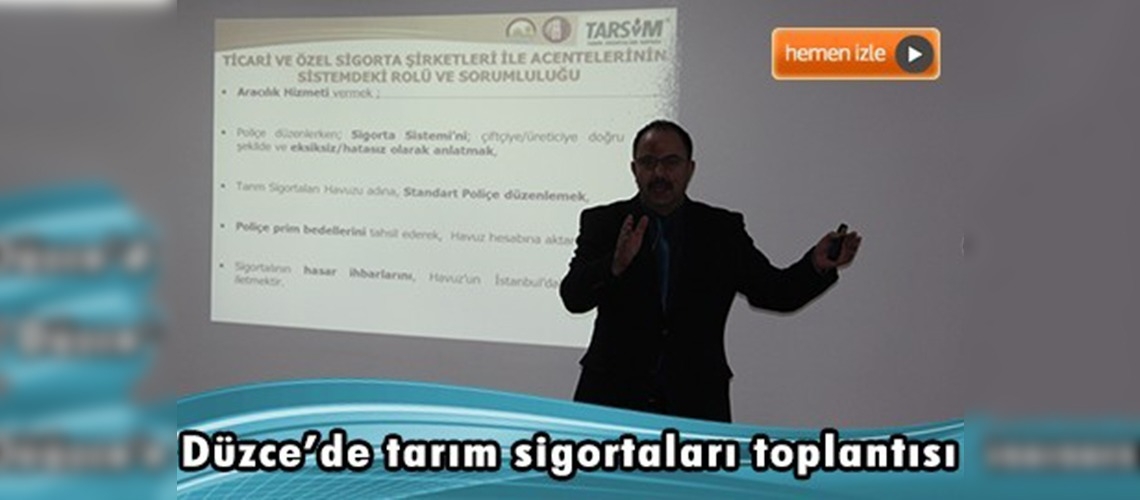 Tarım sigortalarının tanıtımı ve duyurulması amacıyla Düzce il merkezi ve 7 ilçesinde ''Devlet Destekli Tarım Sigortalarının İşleyişi ve 2016 Yılı Uygulamaları'' hakkında bilgilendirme toplantıları düzenlendi.