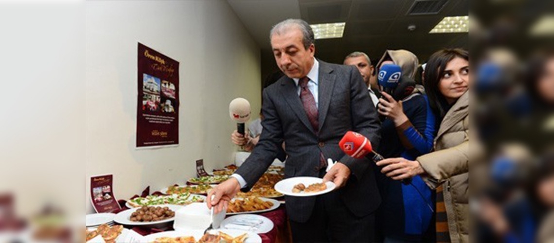 Eker, açılış töreninin ardından bayat ekmeklerle hazırlanan ikramlardan tattı.