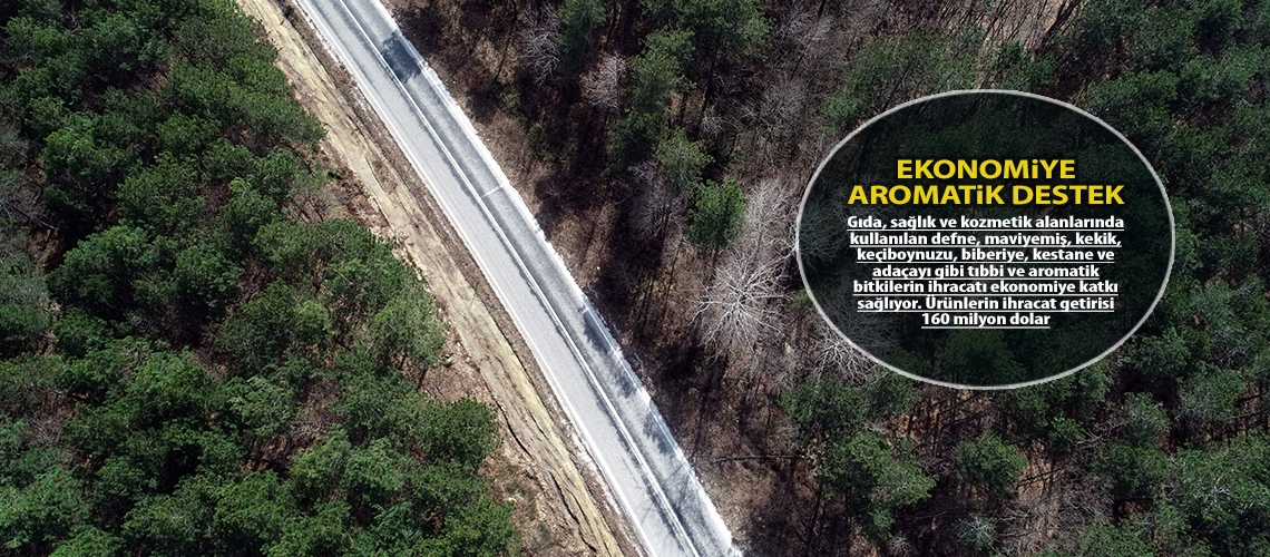 Gıda, sağlık ve kozmetik alanlarında kullanılan defne, maviyemiş, kekik, keçiboynuzu, biberiye, kestane ve adaçayı gibi tıbbi ve aromatik bitkilerin ihracatı ekonomiye katkı sağlıyor. Ürünlerin ihracat getirisi 160 milyon dolar.