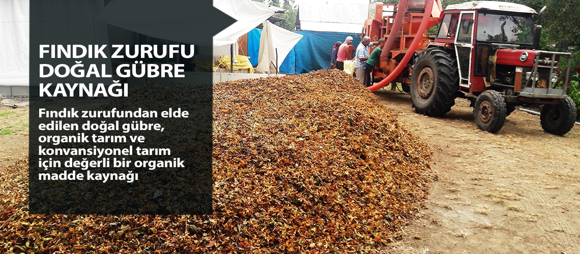 Fındık zurufundan elde edilen doğal gübre, organik tarım ve konvansiyonel tarım için değerli bir organik madde kaynağı. Samsun İl Tarım ve Orman Müdürlüğü de bu doğal kaynağı 'kompost' yaparak fındık bahçelerinde doğal gübre olarak kullanılmasını yaygınlaştırmak için çalışmalarını sürdürüyor.
