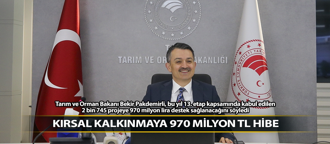 Tarım ve Orman Bakanı Bekir Pakdemirli, bu yıl 13. etap kapsamında kabul edilen 2 bin 745 projeye 970 milyon lira destek sağlanacağını söyledi.
