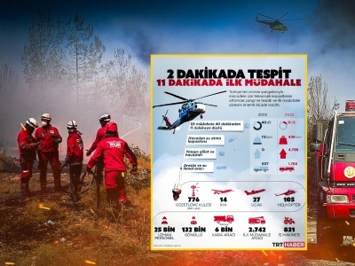 Türkiye'nin orman yangınlarıyla mücadelede teknolojik kapasitesini artırması, yangın tespitini 2 dakikaya, ilk müdahale süresini ise 11 dakikaya düşürdü.
