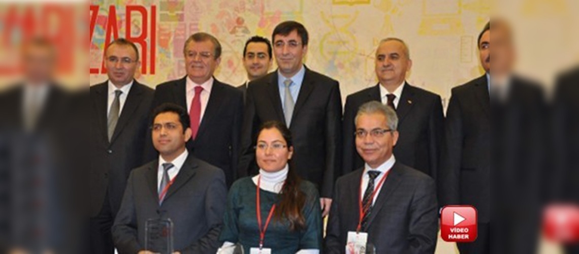 Dr. Caner Koç, birincilik ödülünü Kalkınma Bakanı Cevdet Yılmaz'ın elinden aldı.