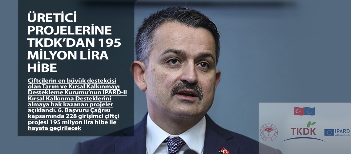 Çiftçilerin en büyük destekçisi olan Tarım ve Kırsal Kalkınmayı Destekleme Kurumu’nun IPARD-II Kırsal Kalkınma Desteklerini almaya hak kazanan projeler açıklandı. 6. Başvuru Çağrısı kapsamında 228 girişimci çiftçi projesi 195 milyon lira hibe ile hayata geçirilecek.