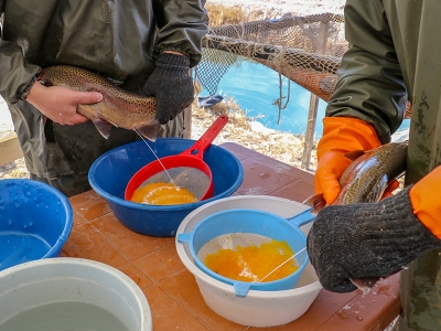 Alabalık yetiştiriciliğinin yaygınlaştığı Van’da yavru alabalık üretimi için sağım işlemi yapıldı. Gürpınar ilçesindeki alabalık tesislerindeki sağım işlemini yapan Tarım ve Orman İl Müdürlüğü Balıkçılık ve Su Ürünleri Şubesi ekipleri üreticilere yönelik bilgilendirme çalışmaları da yürütüyor.