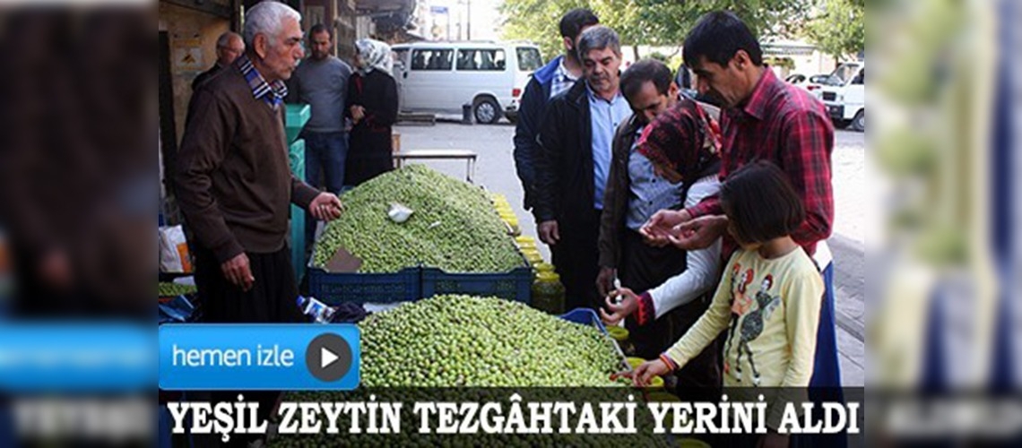 Sofraların vazgeçilmez lezzeti yeşil zeytin tezgahtaki yerini aldı. Zeytin satıcıları ise bölgedeki kuraklıktan dolayı zeytinin az olduğunu ve diğer illerden getirildiğini belirtti.