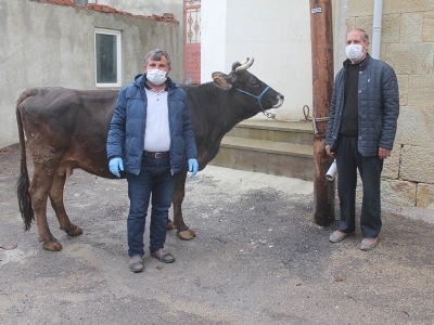 "Milli Dayanışma Kampanyası"na ineğiyle katıldı